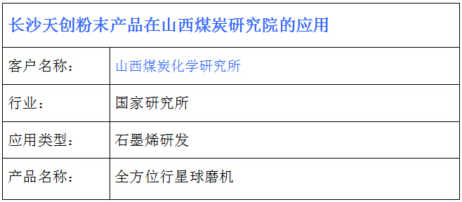 山西煤炭化學研究所在長沙天創粉末采購全方位行星式球磨機,用于石墨烯材料研發。