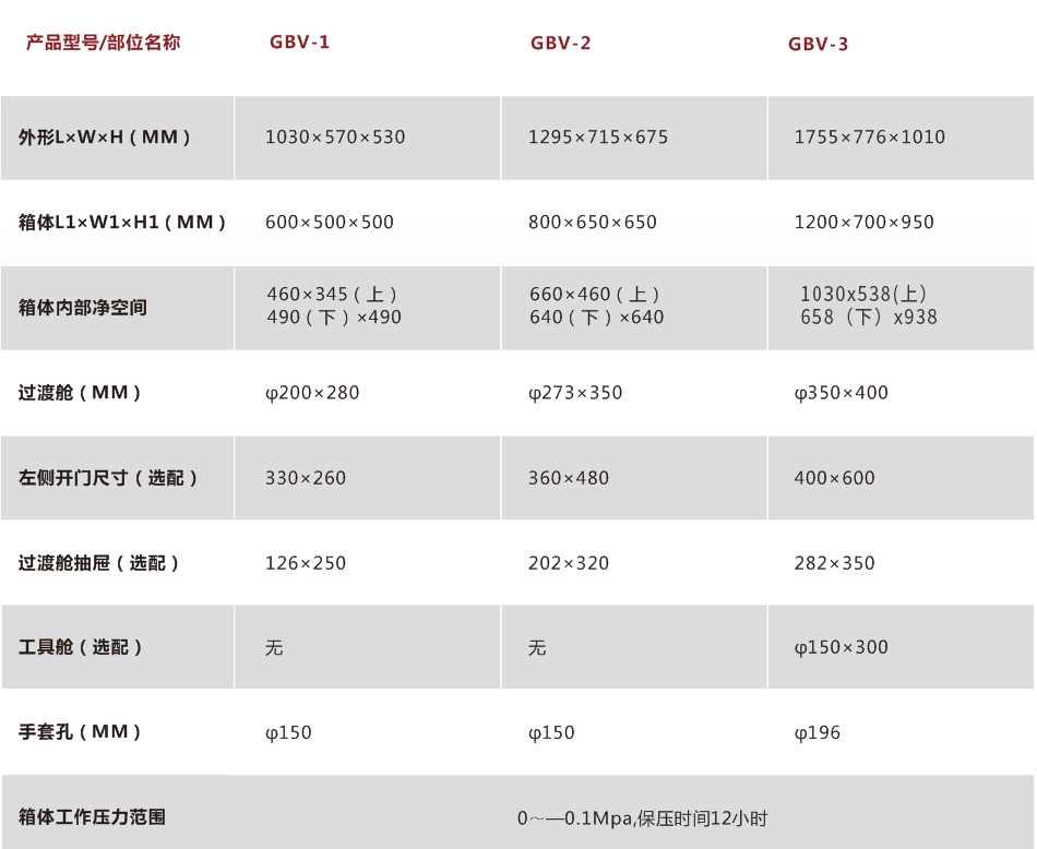 五、不銹鋼真空手套箱參數