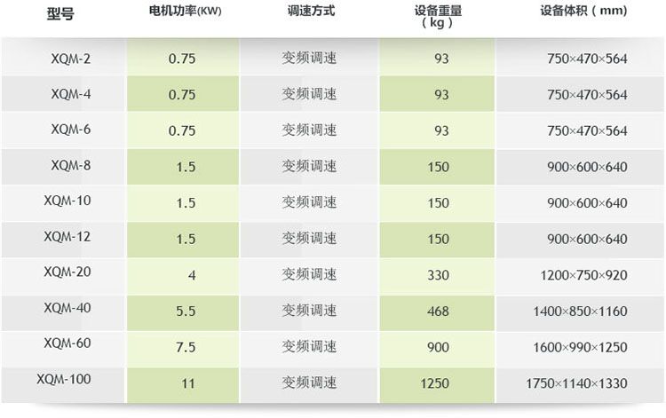 表三:行星球磨機尺寸重量參考